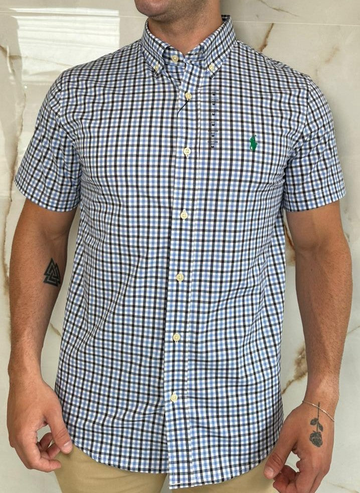 Camisa Social RL Microxadrez M/C - Azul | Verde