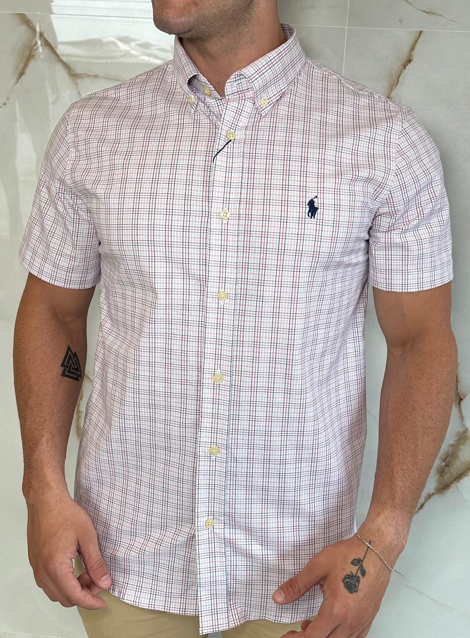 Camisa Social RL Microxadrez M/C - Branco | Marinho