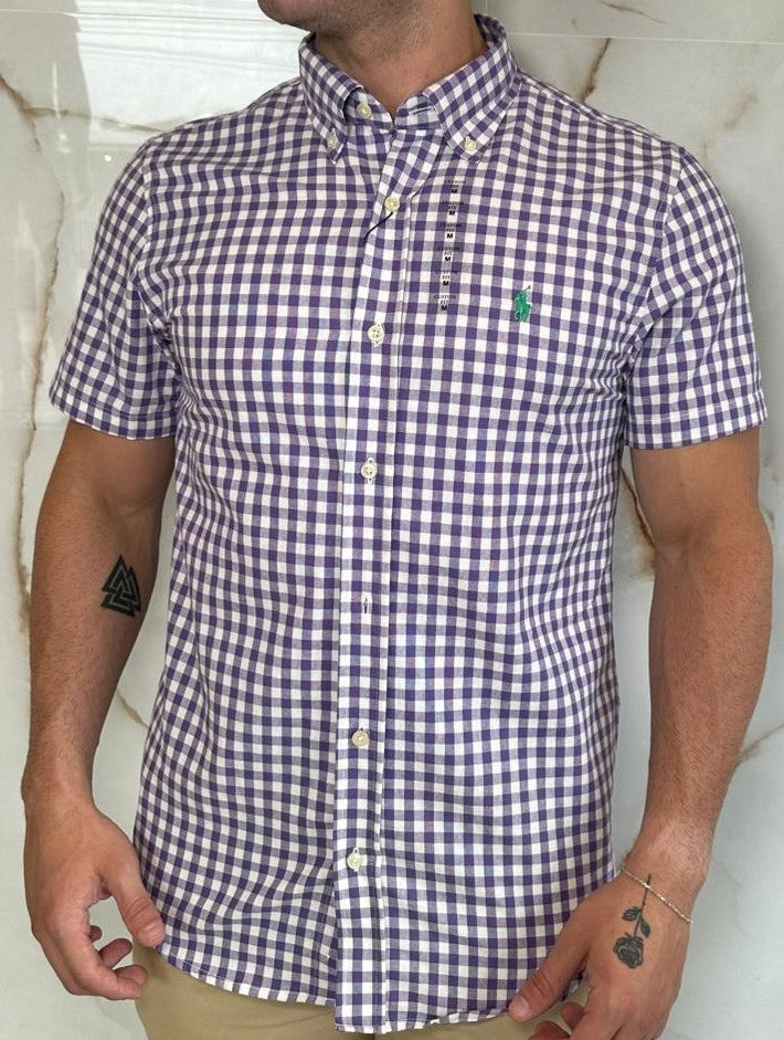 Camisa Social RL Microxadrez M/C - Roxo | Verde