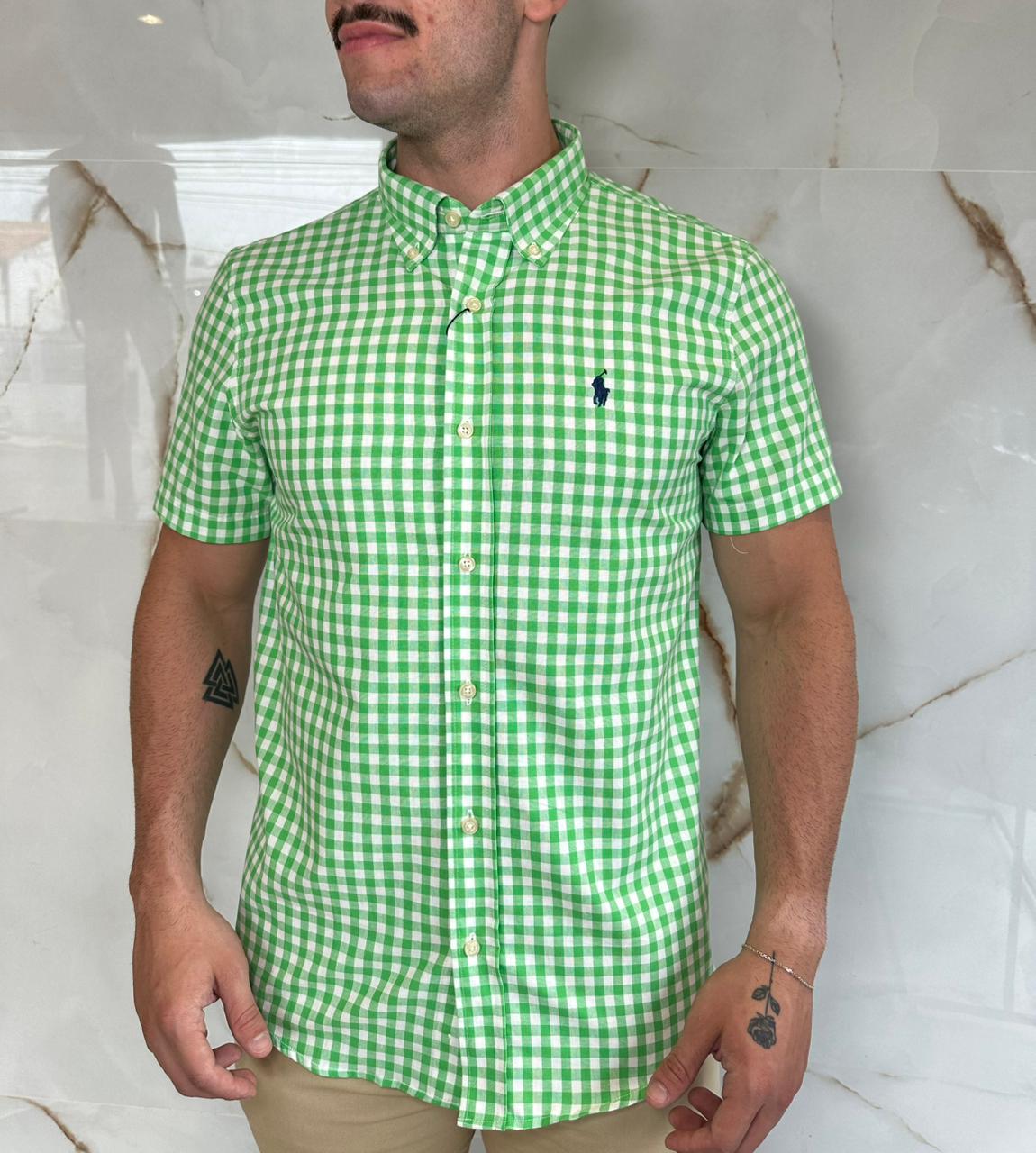Camisa Social RL Microxadrez M/C - Verde | Marinho
