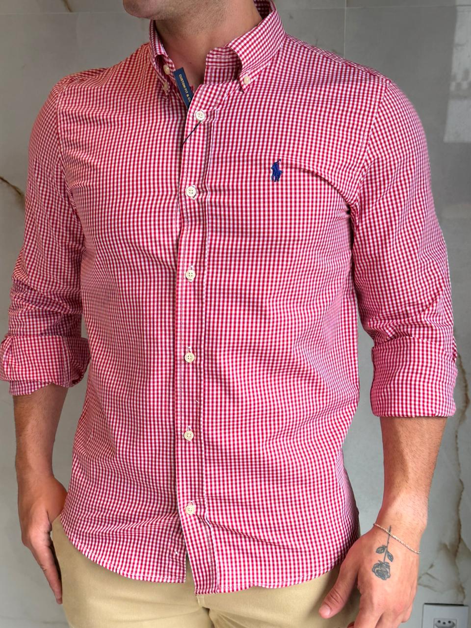 Camisa Social RL Microxadrez M/L - Vermelho | Marinho