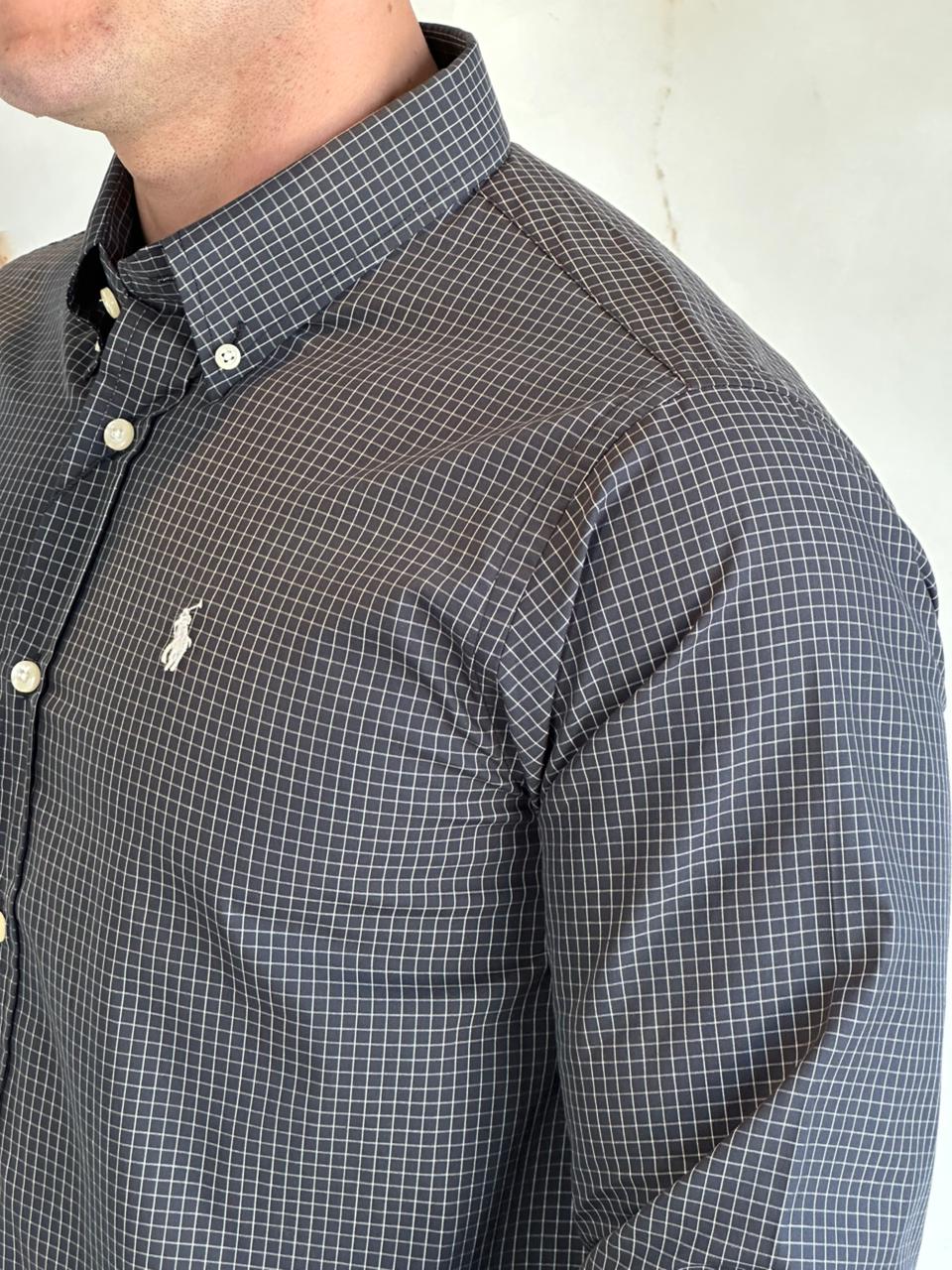 Camisa Social RL Quadriculada M/L - Preto Logo Cinza