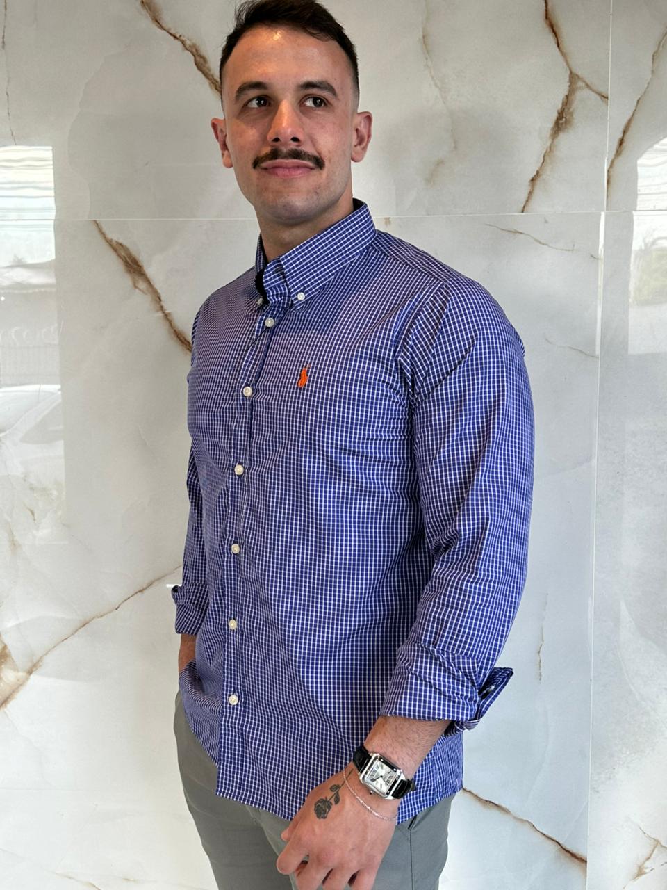 Camisa Social RL Xadrez M/L - A.Marinho Logo Laranja