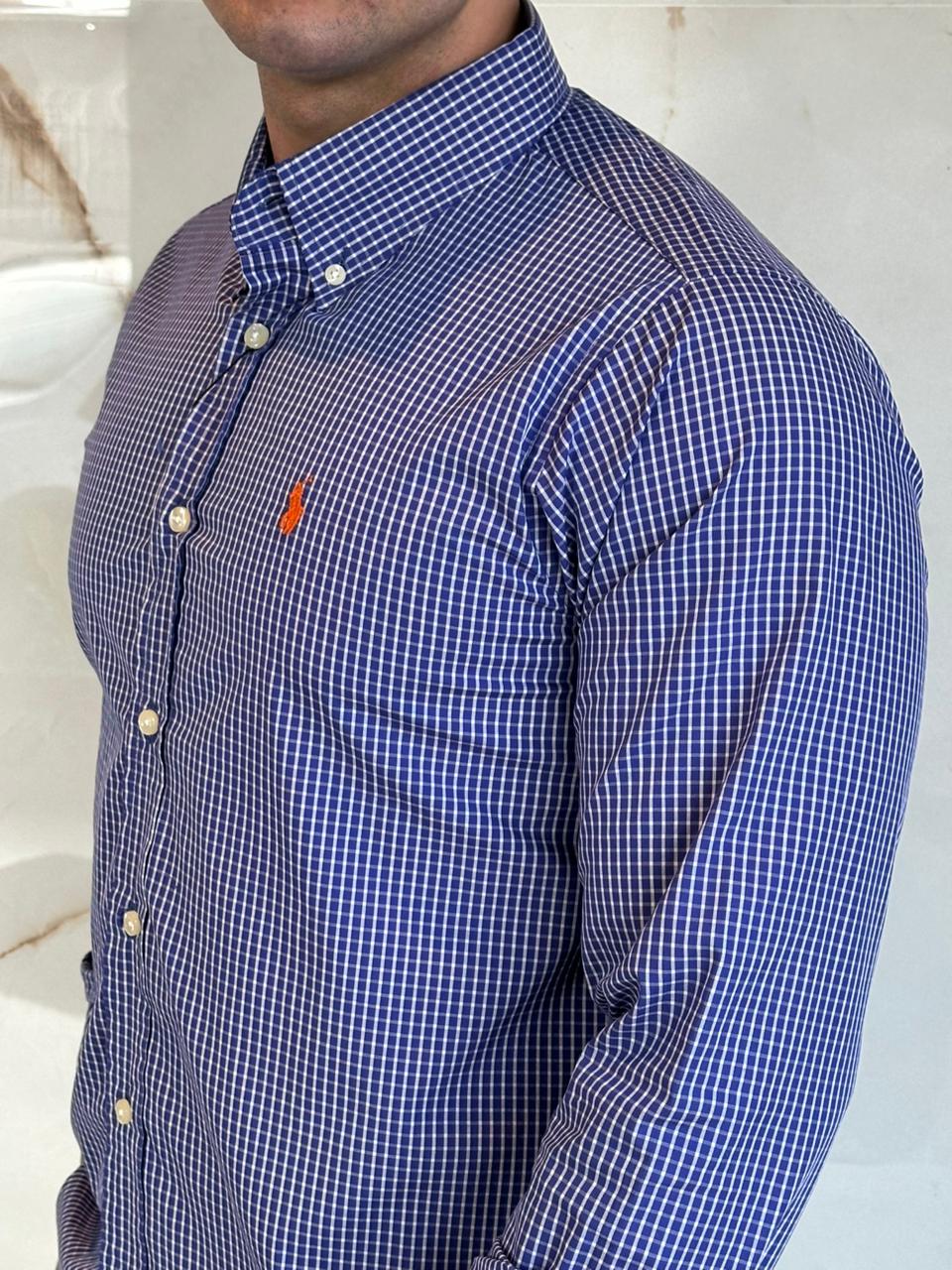 Camisa Social RL Xadrez M/L Tam.Especial - A.Marinho Logo Laranja