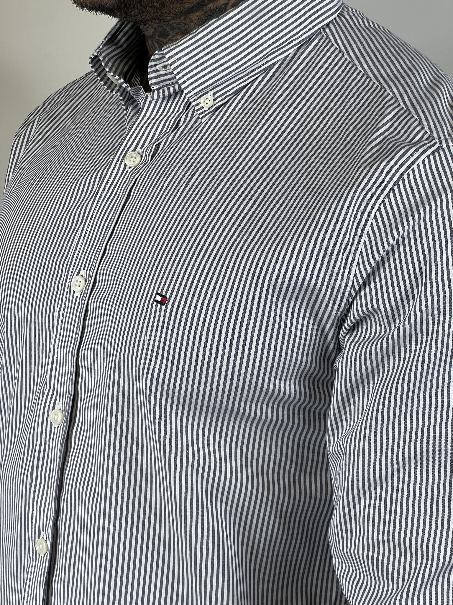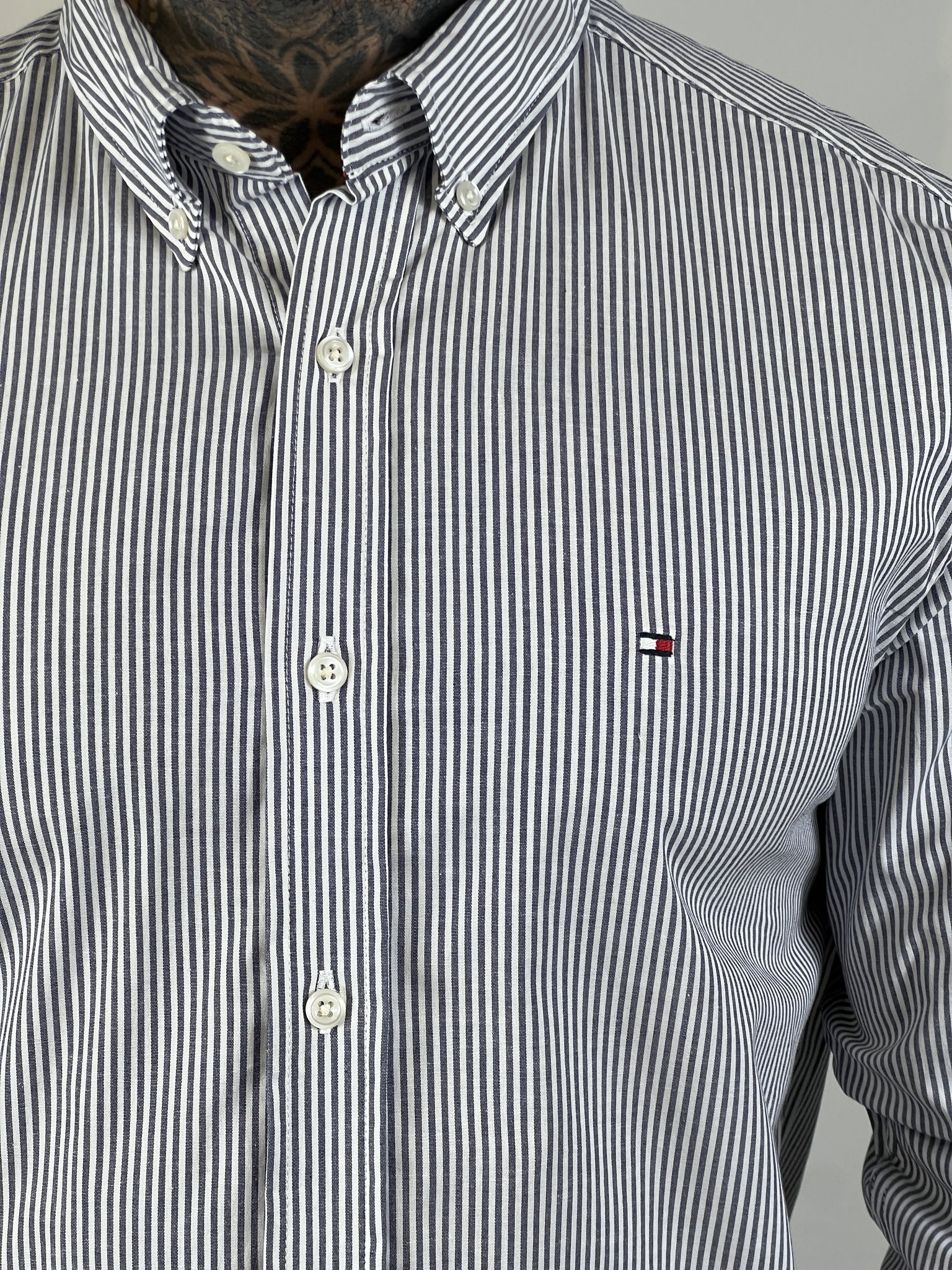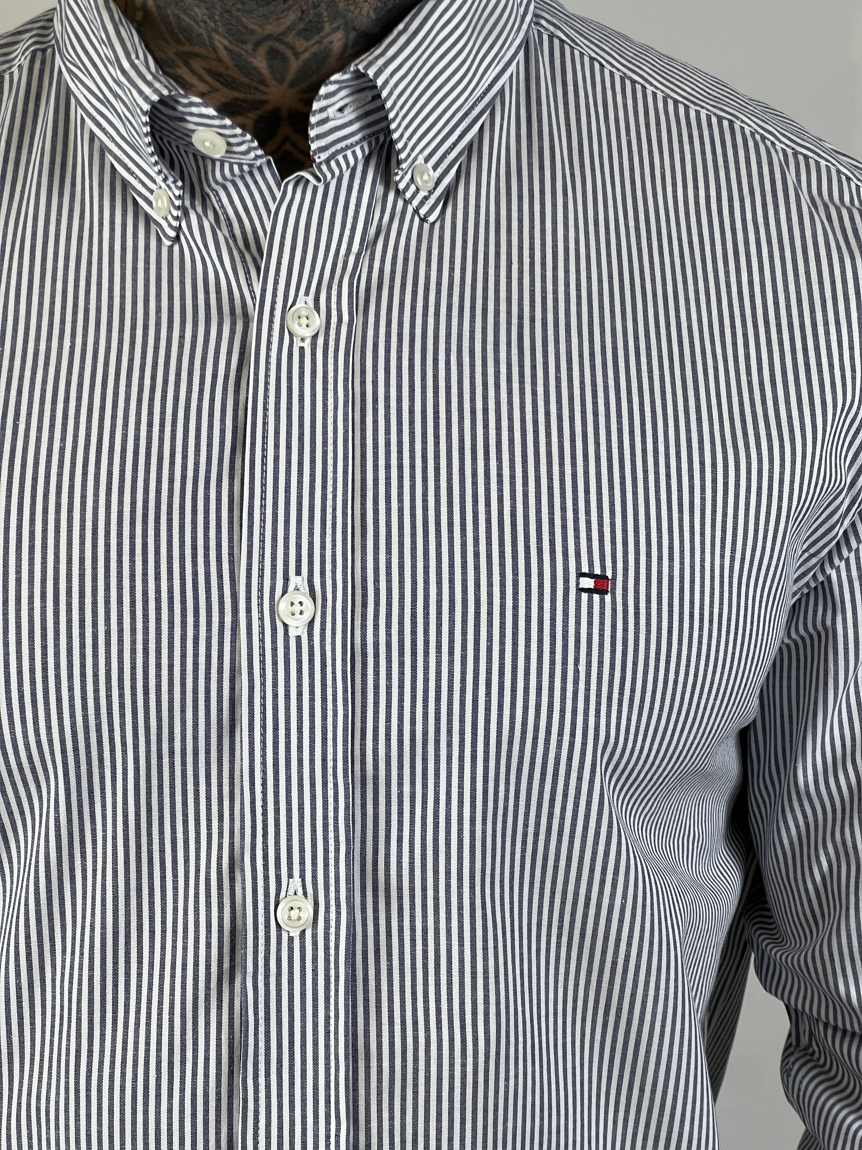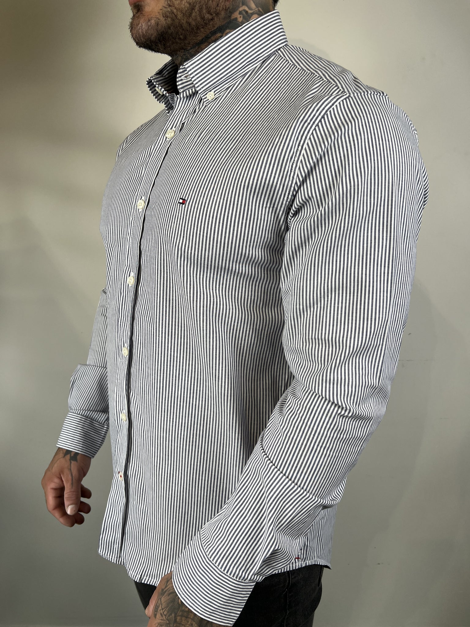 A sofisticação está nos detalhes. Esta camisa social Tommy Hilfiger em tricoline listrada traduz elegância atemporal com um toque moderno. Feita em tecido leve, fresco e de alta qualidade, garante conforto e caimento impecável em qualquer ocasião.