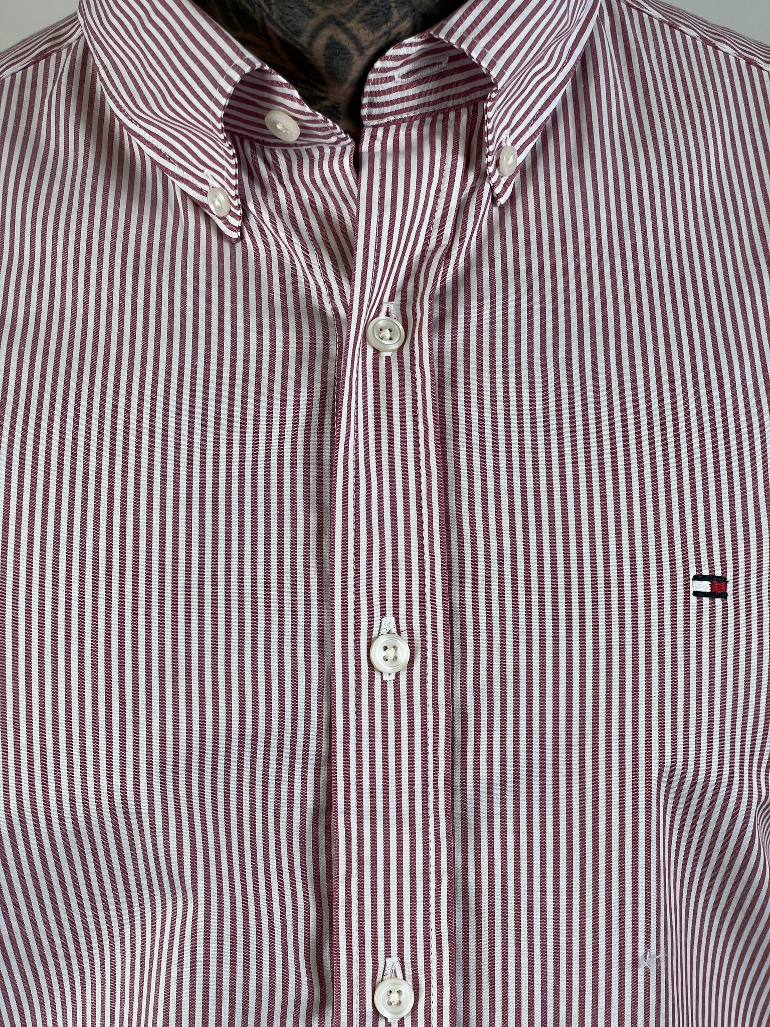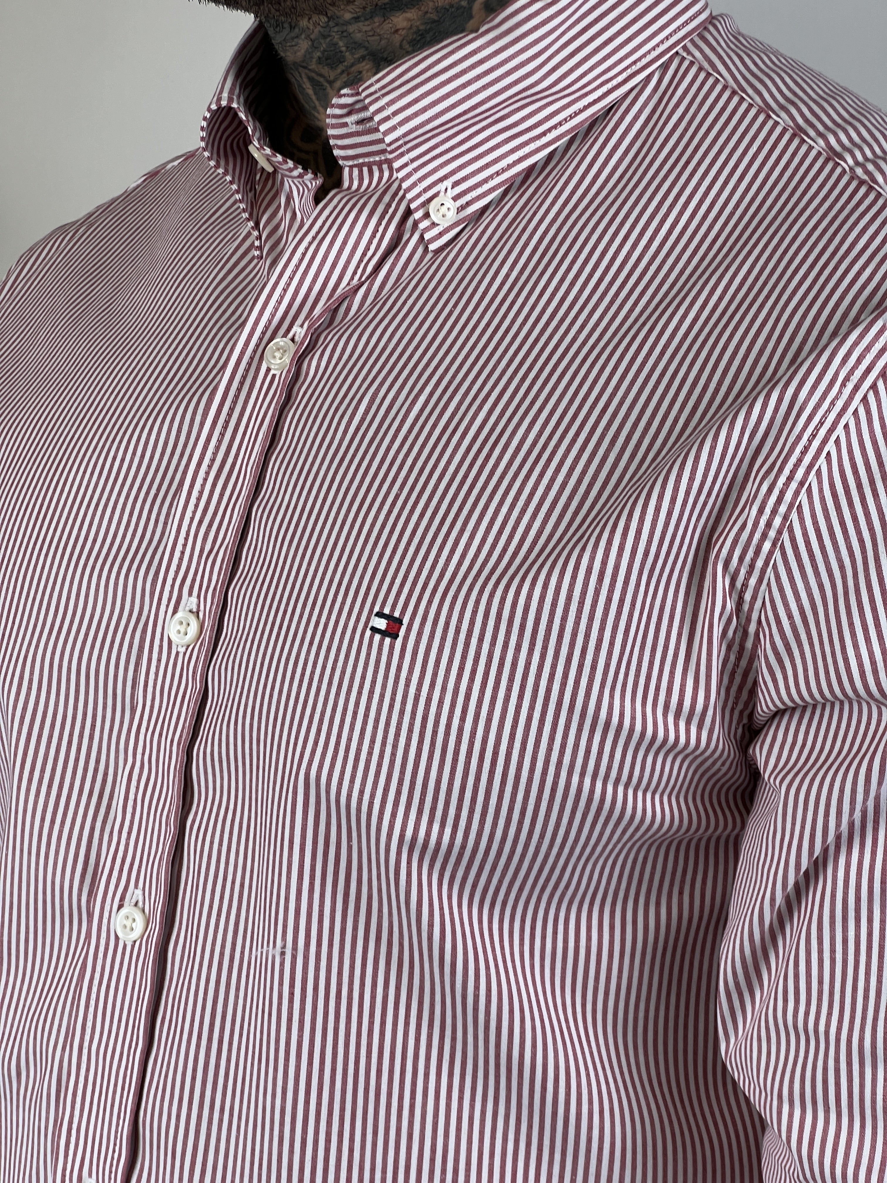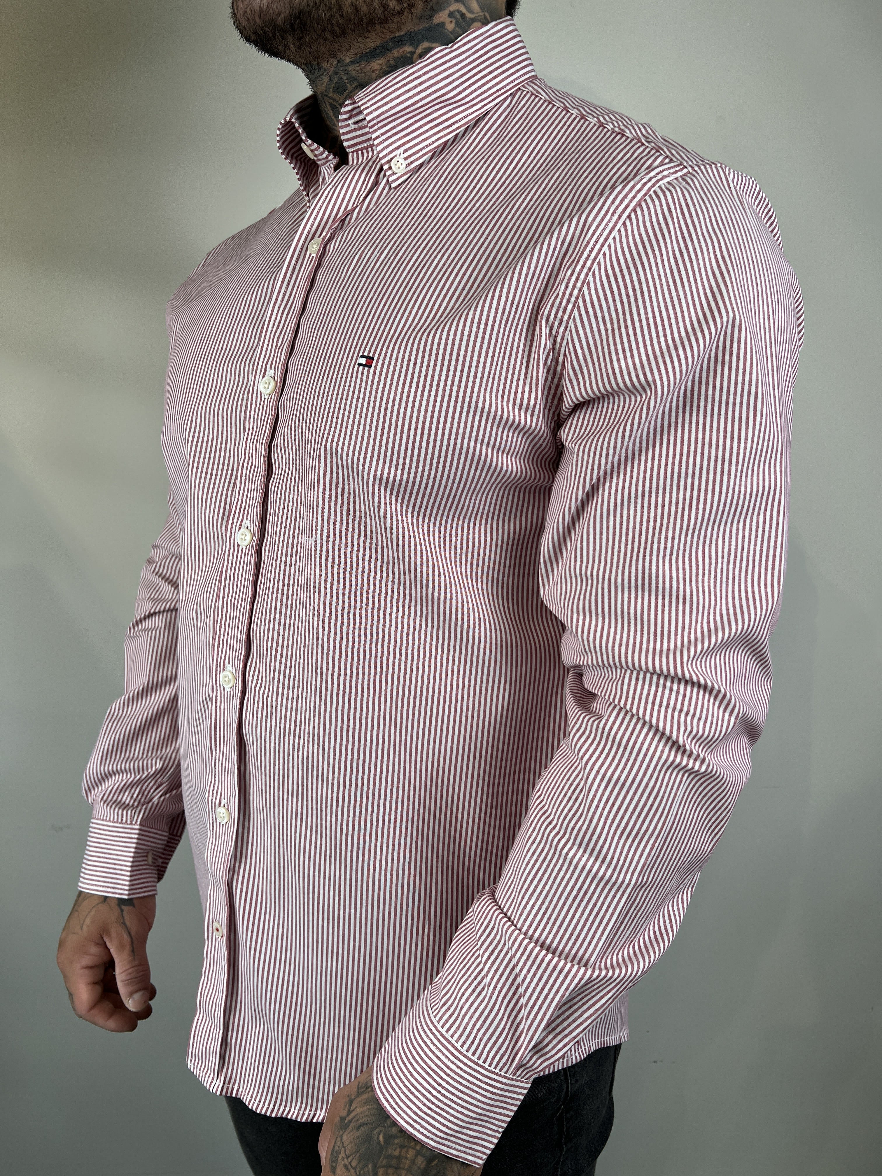 A sofisticação está nos detalhes. Esta camisa social Tommy Hilfiger em tricoline listrada traduz elegância atemporal com um toque moderno. Feita em tecido leve, fresco e de alta qualidade, garante conforto e caimento impecável em qualquer ocasião.