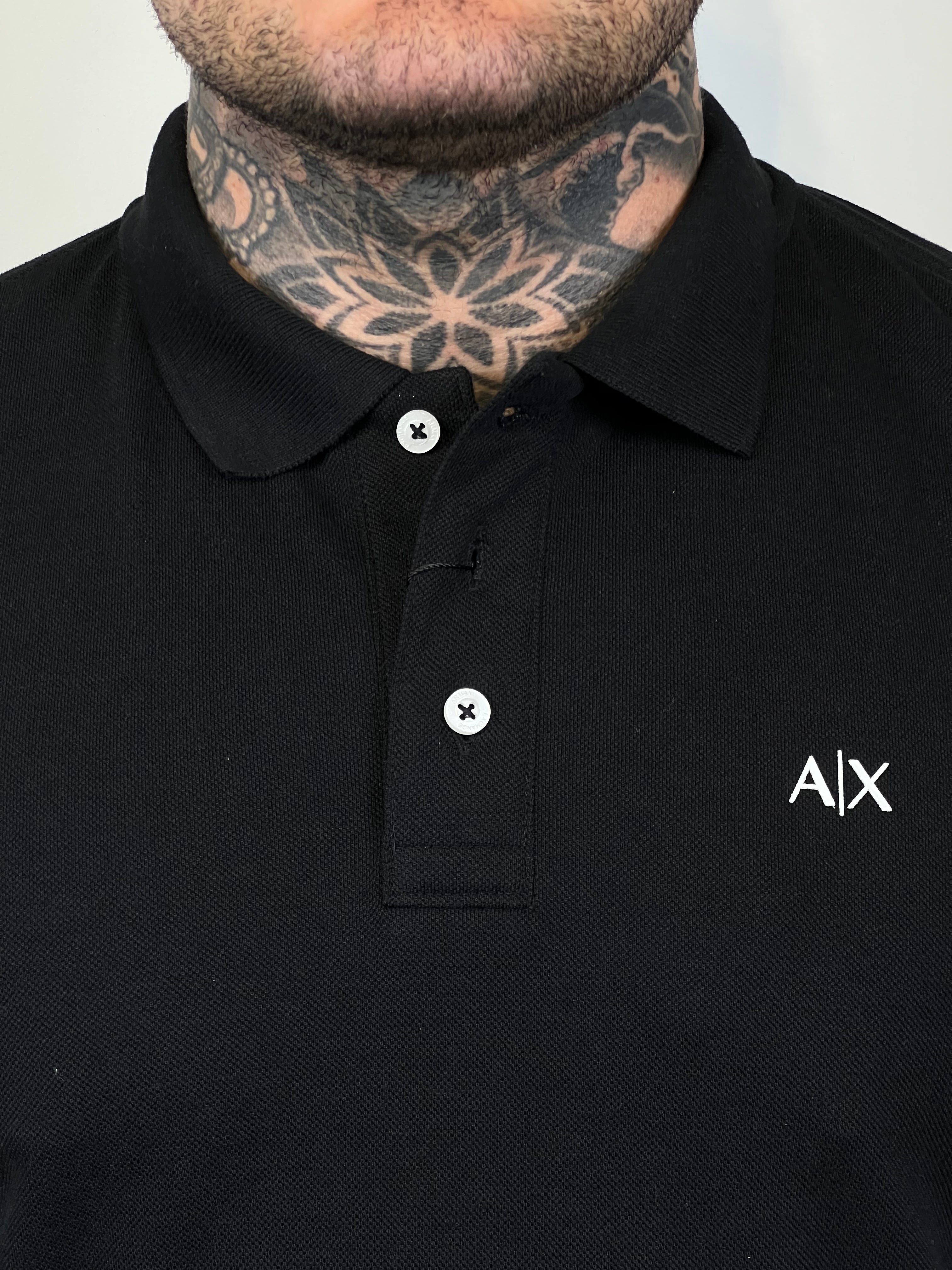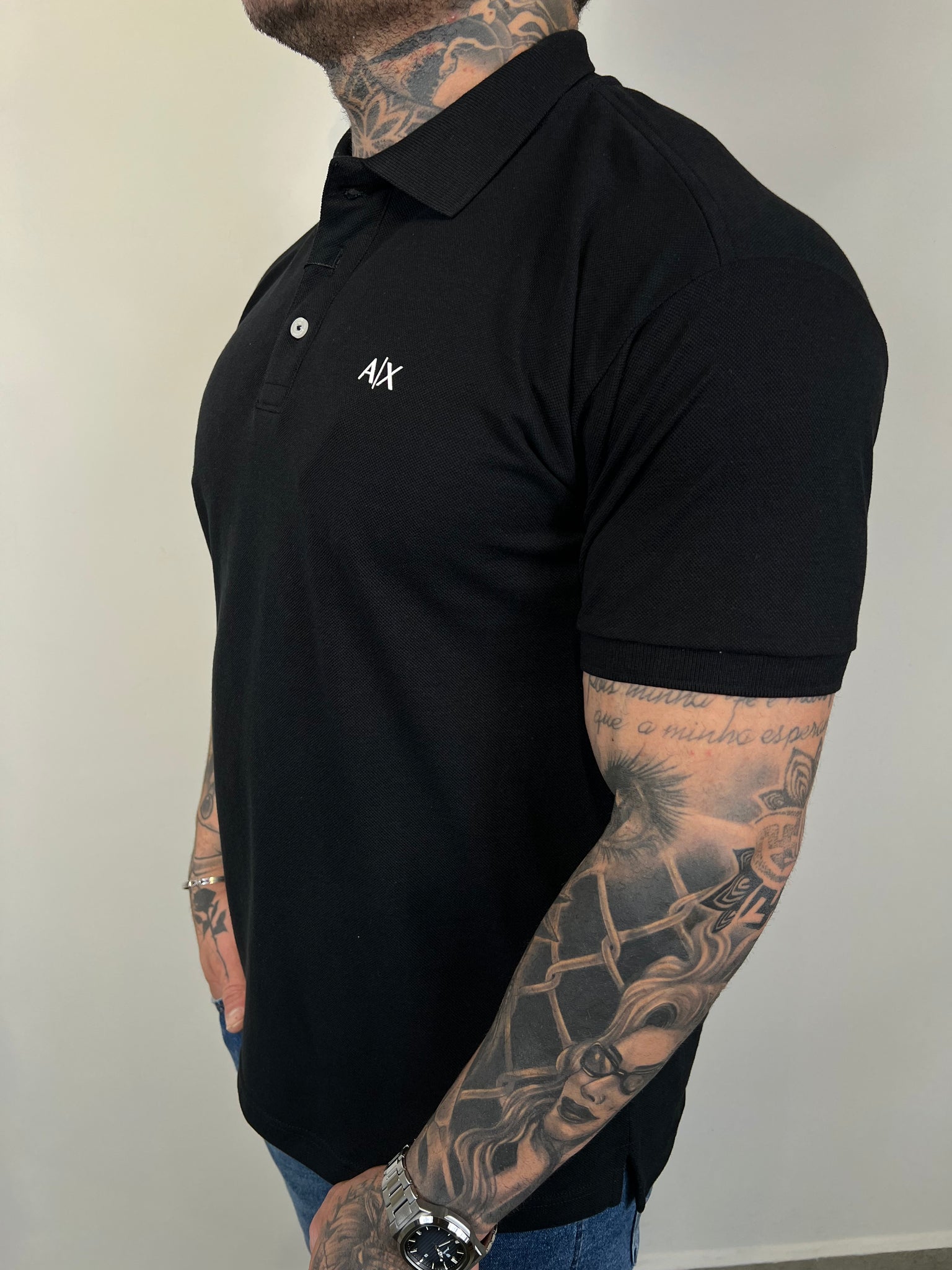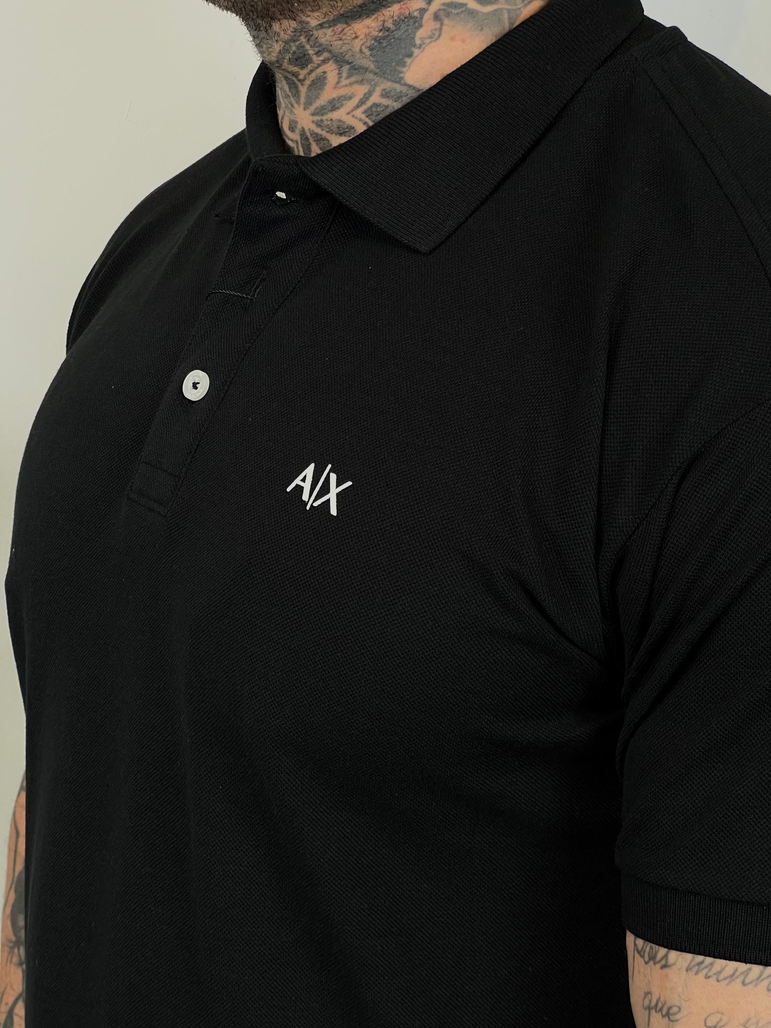 Detalhes: gola polo clássica com carcela de botões, logo AX em evidência, acabamento sofisticado.