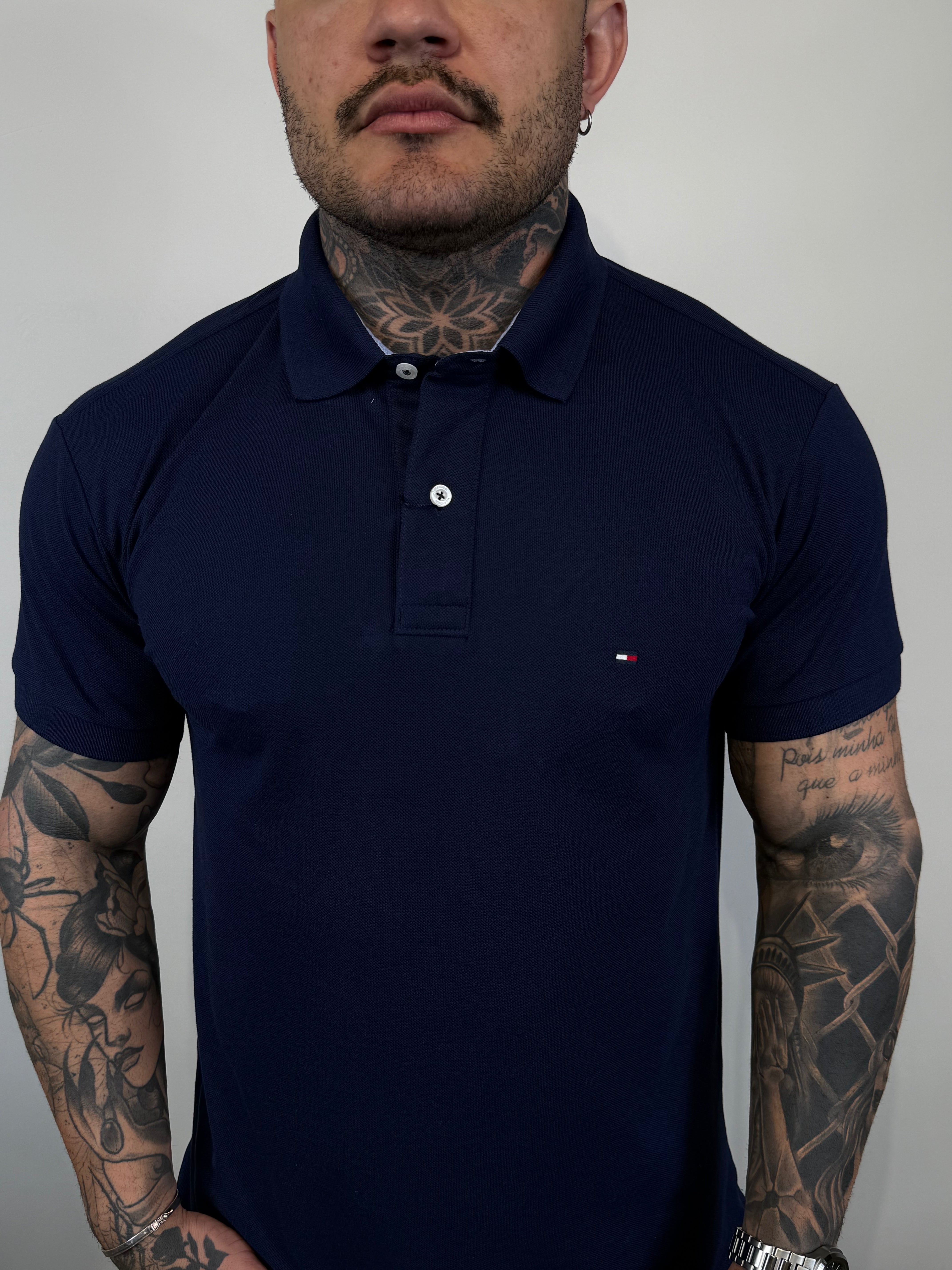 • A gola polo bem estruturada e os punhos com acabamento canelado desenham o perfil da peça com marcas registradas da Tommy Hilfiger — logo bordado na altura do peito que salta sutilmente, cores contrastantes que realçam, faixas ou detalhes que criam profundidade visual.