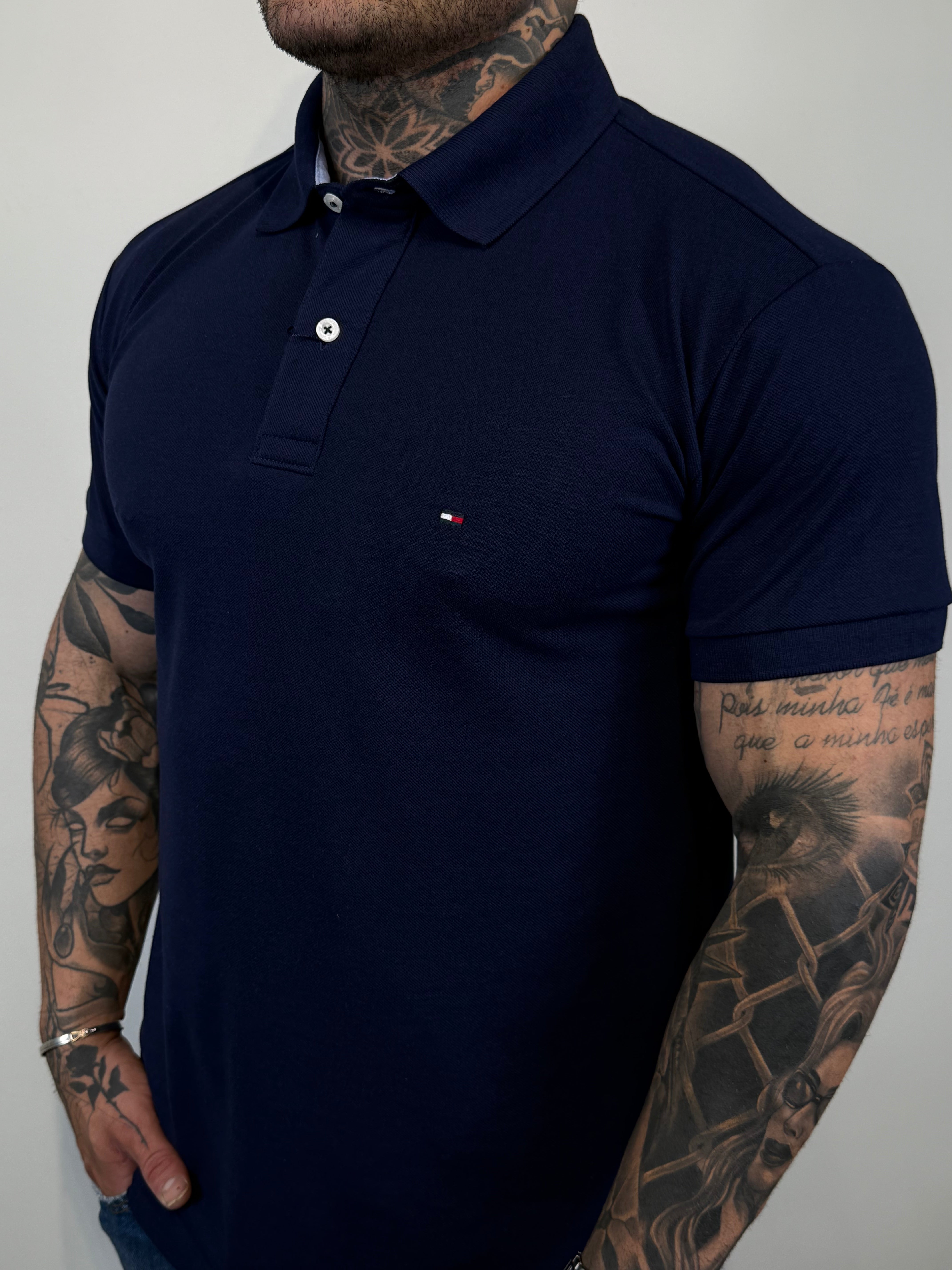 • Detalhes: gola polo com carcela de botões; acabamento canelado nos punhos; logo ou bandeira Tommy discretamente bordados;