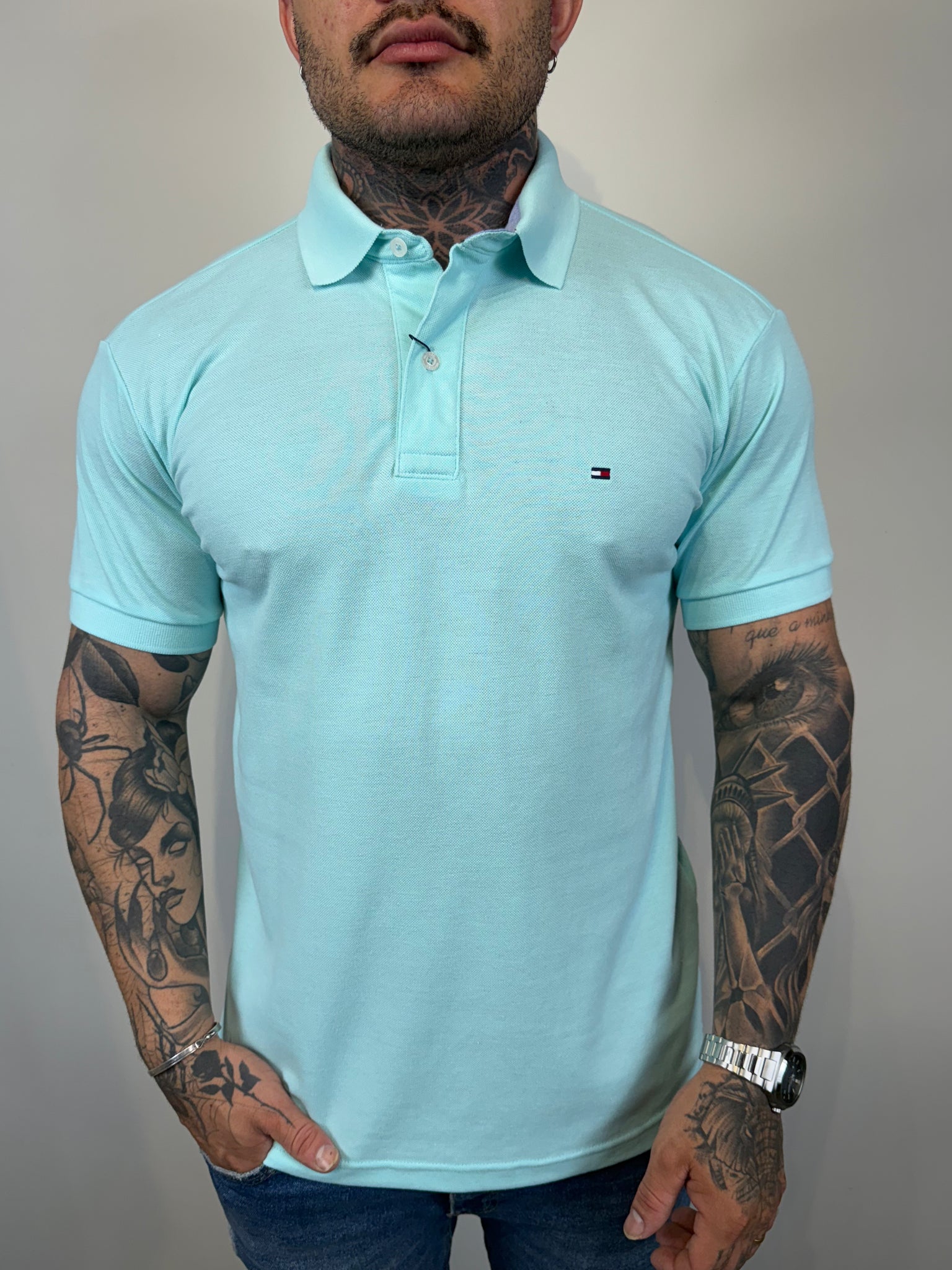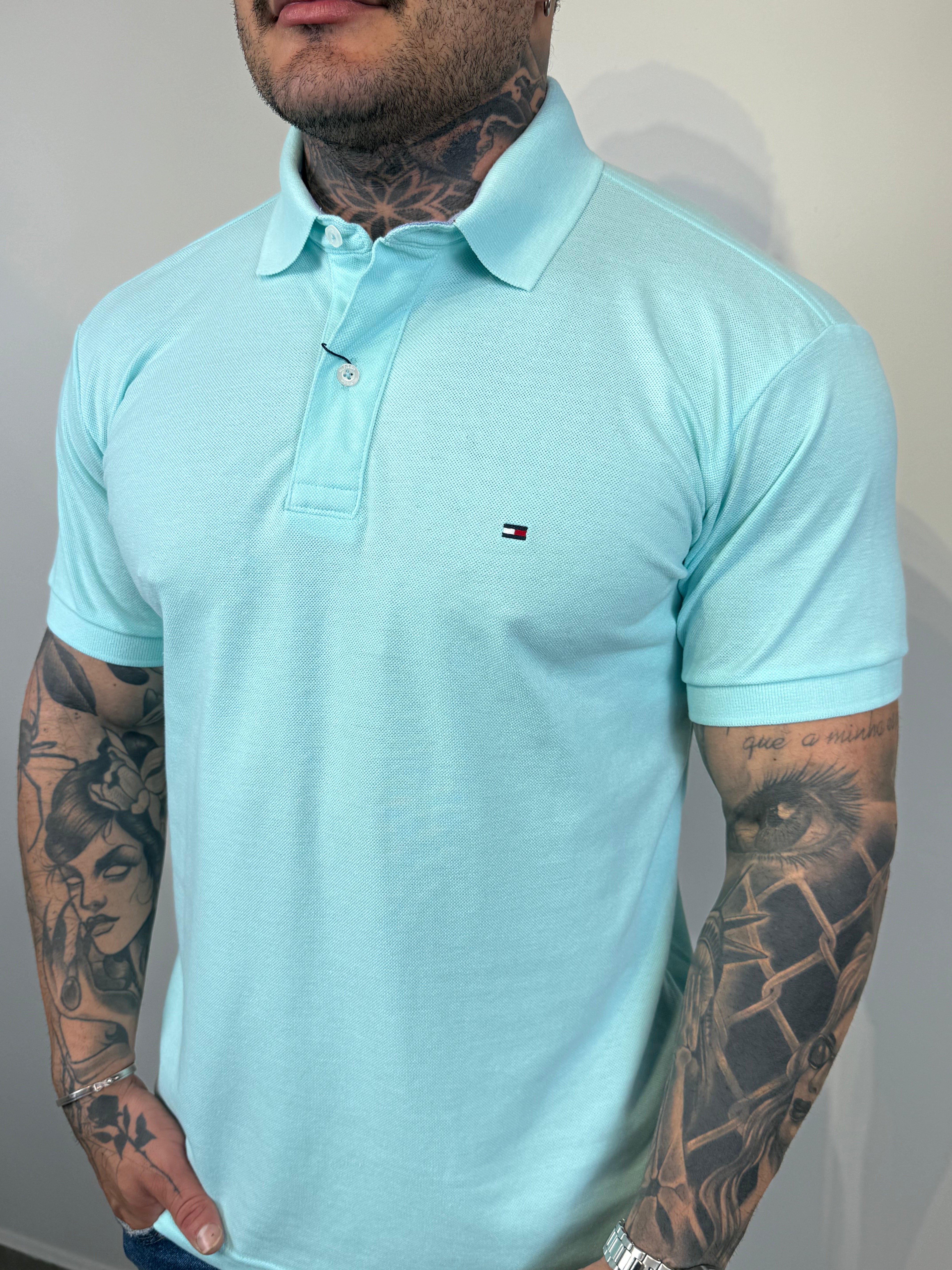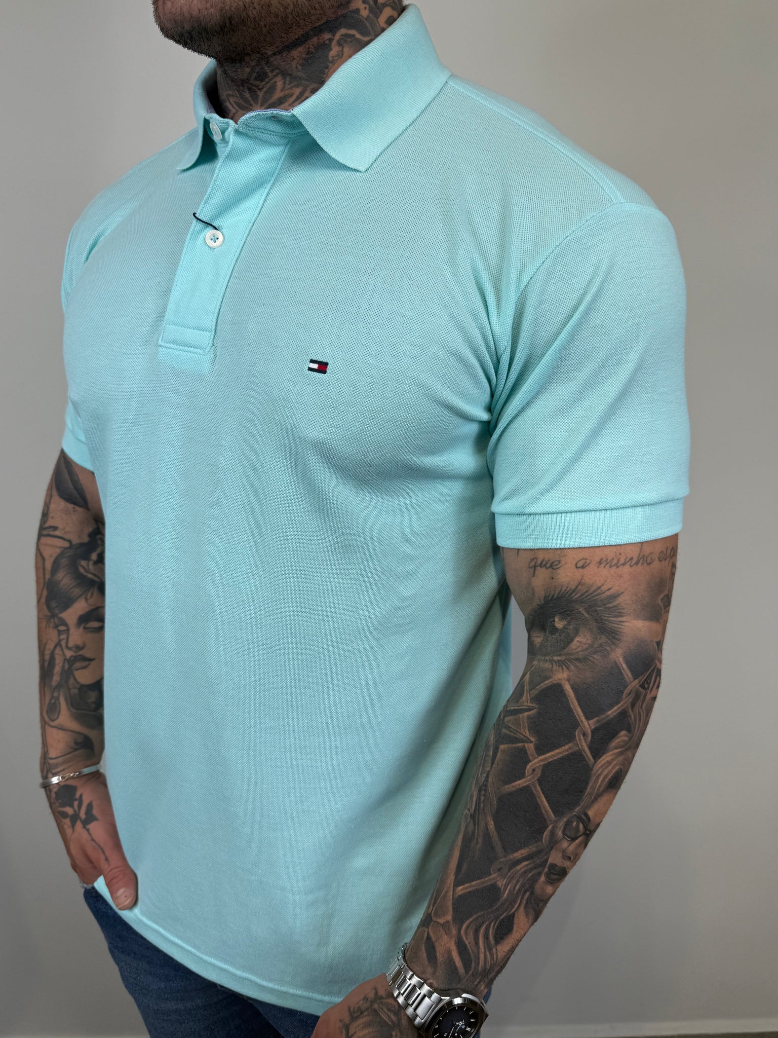 • Detalhes: gola polo com carcela de botões; acabamento canelado nos punhos; logo ou bandeira Tommy discretamente bordados;