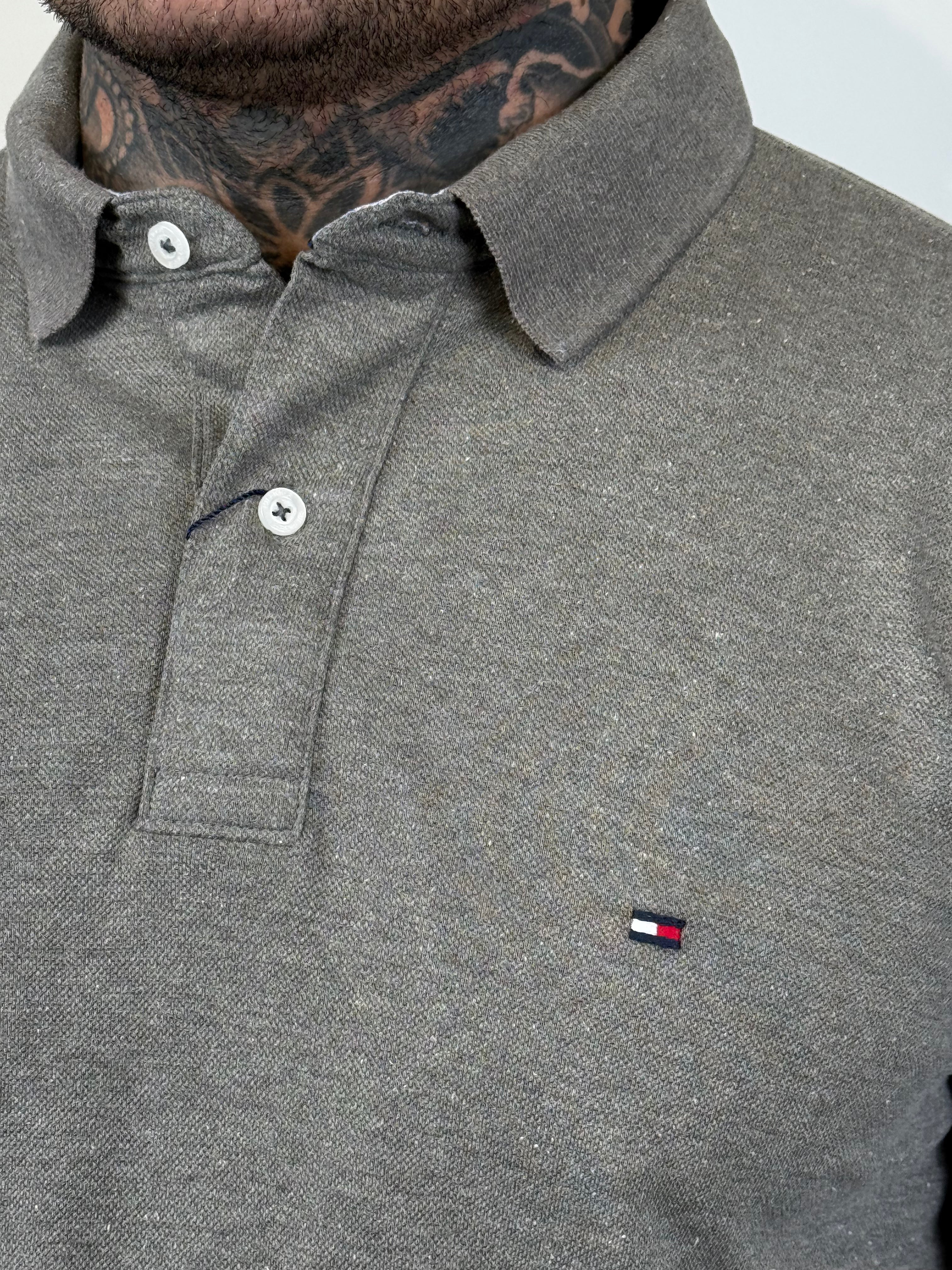 • A gola polo bem estruturada e os punhos com acabamento canelado desenham o perfil da peça com marcas registradas da Tommy Hilfiger — logo bordado na altura do peito que salta sutilmente, cores contrastantes que realçam, faixas ou detalhes que criam profundidade visual.