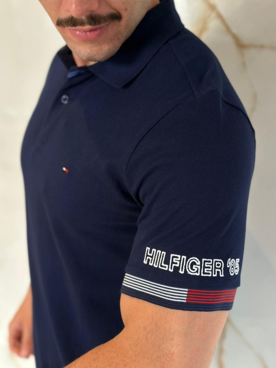 • Detalhes: gola polo com carcela de botões; acabamento canelado nos punhos; logo ou bandeira Tommy discretamente bordados;