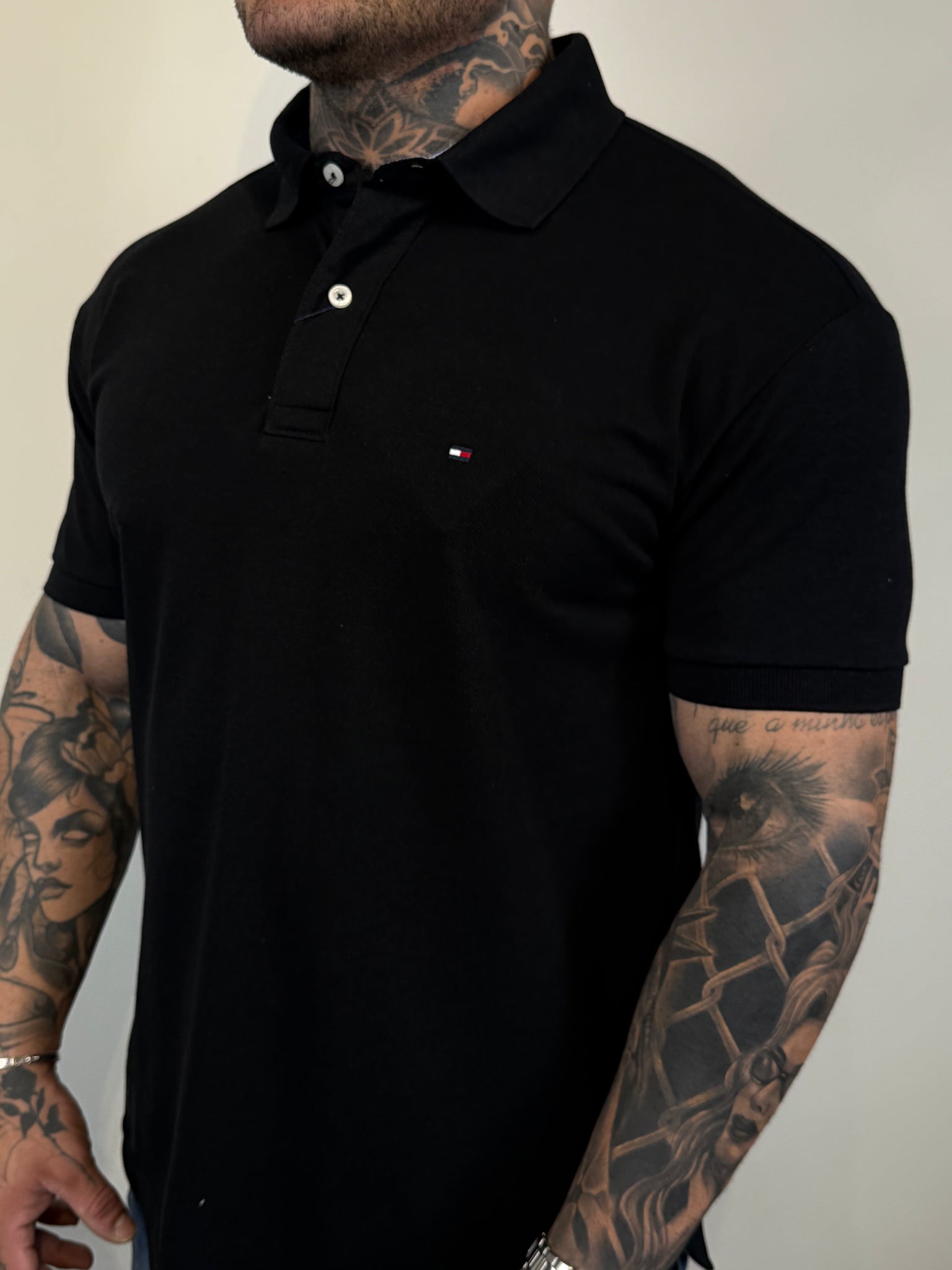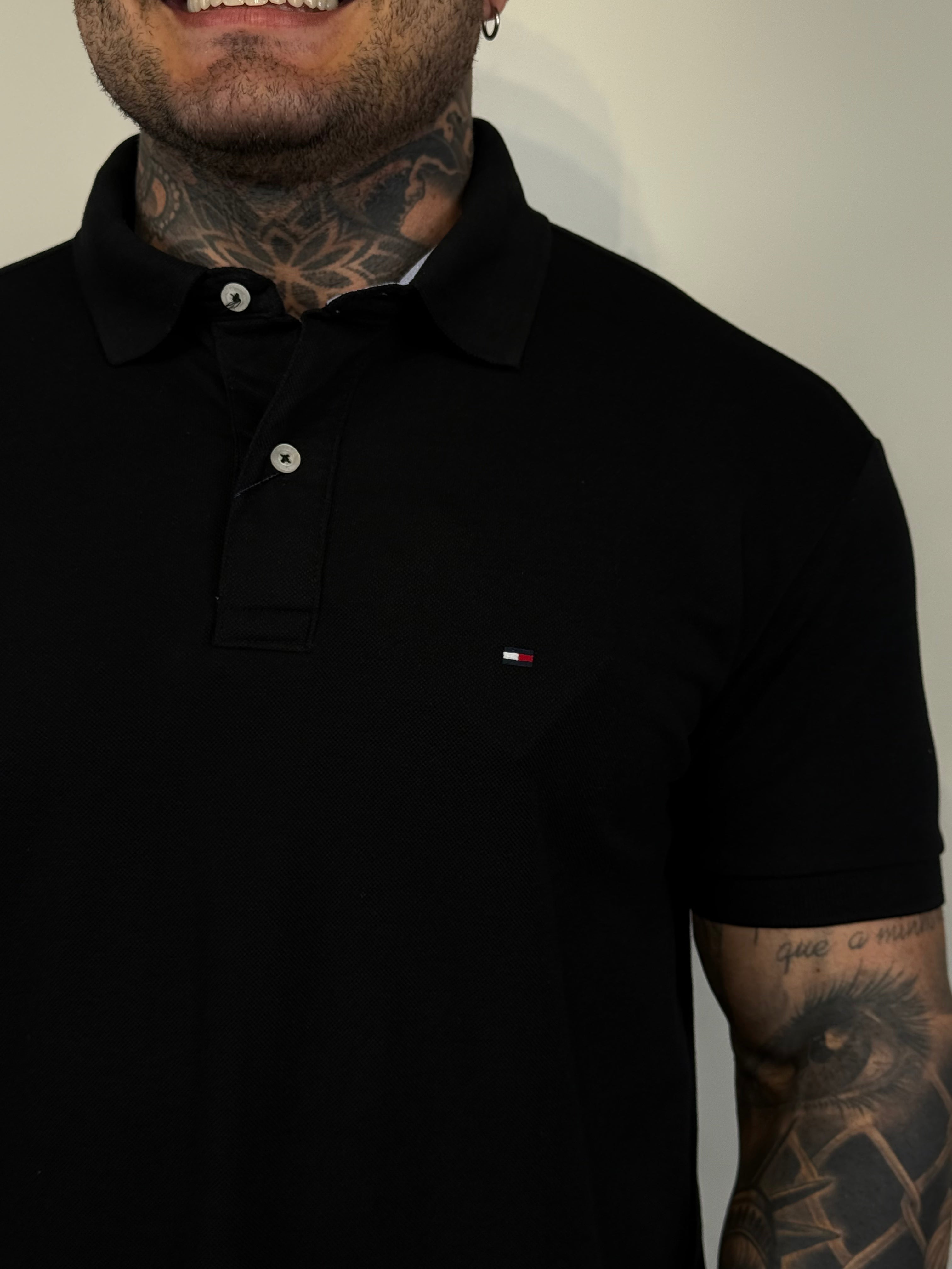 • A gola polo bem estruturada e os punhos com acabamento canelado desenham o perfil da peça com marcas registradas da Tommy Hilfiger — logo bordado na altura do peito que salta sutilmente, cores contrastantes que realçam, faixas ou detalhes que criam profundidade visual.