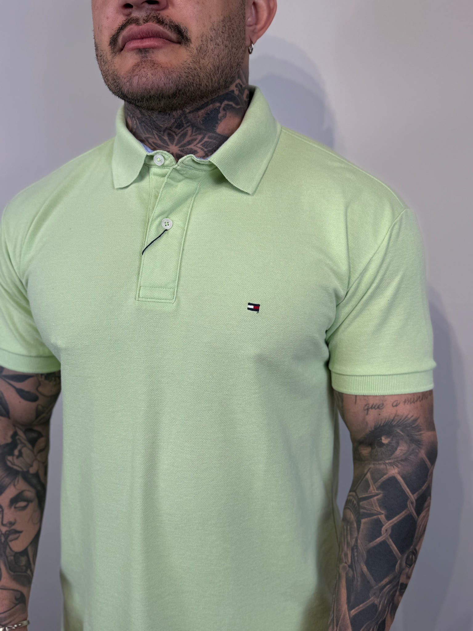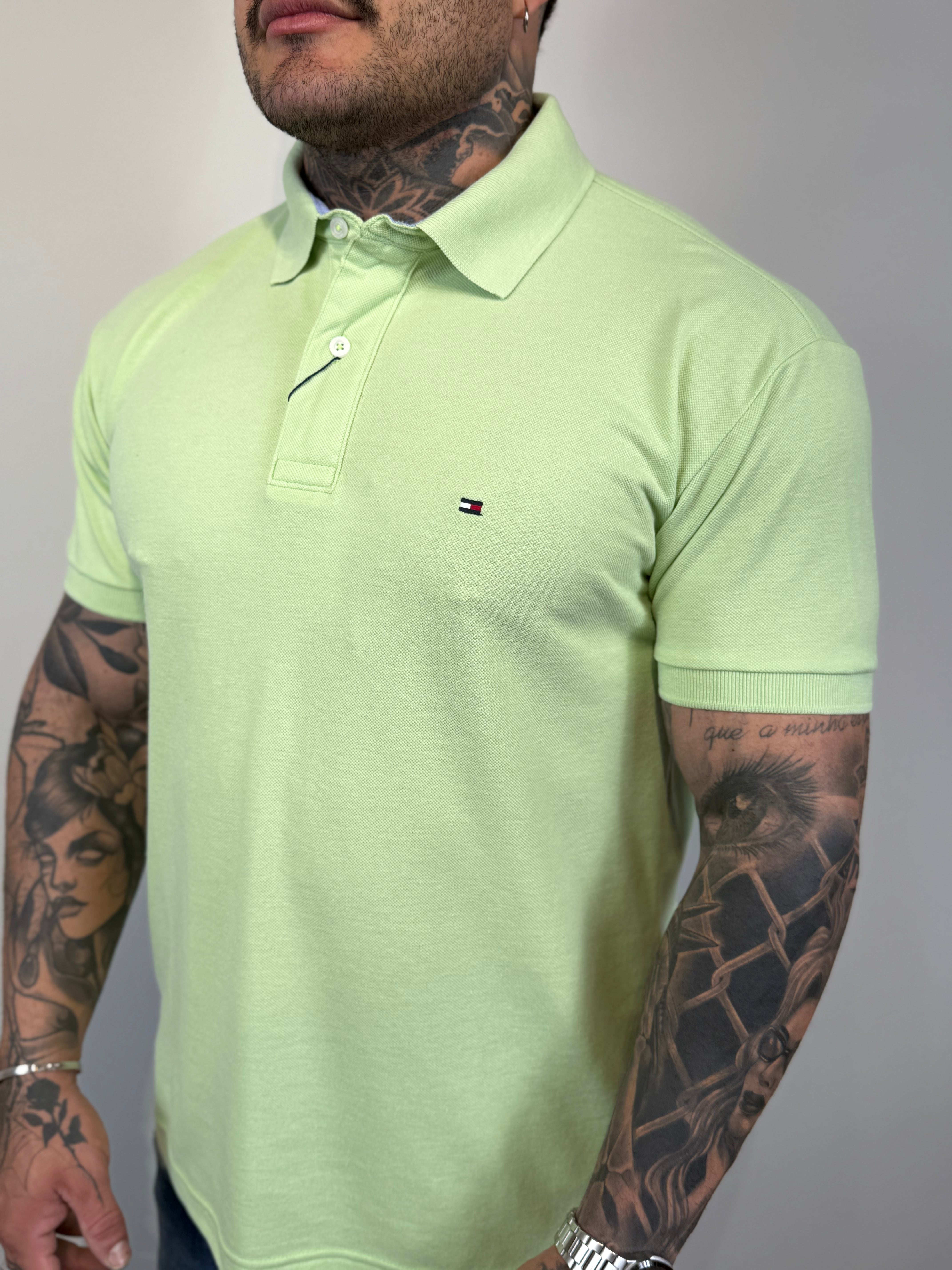 • Detalhes: gola polo com carcela de botões; acabamento canelado nos punhos; logo ou bandeira Tommy discretamente bordados;