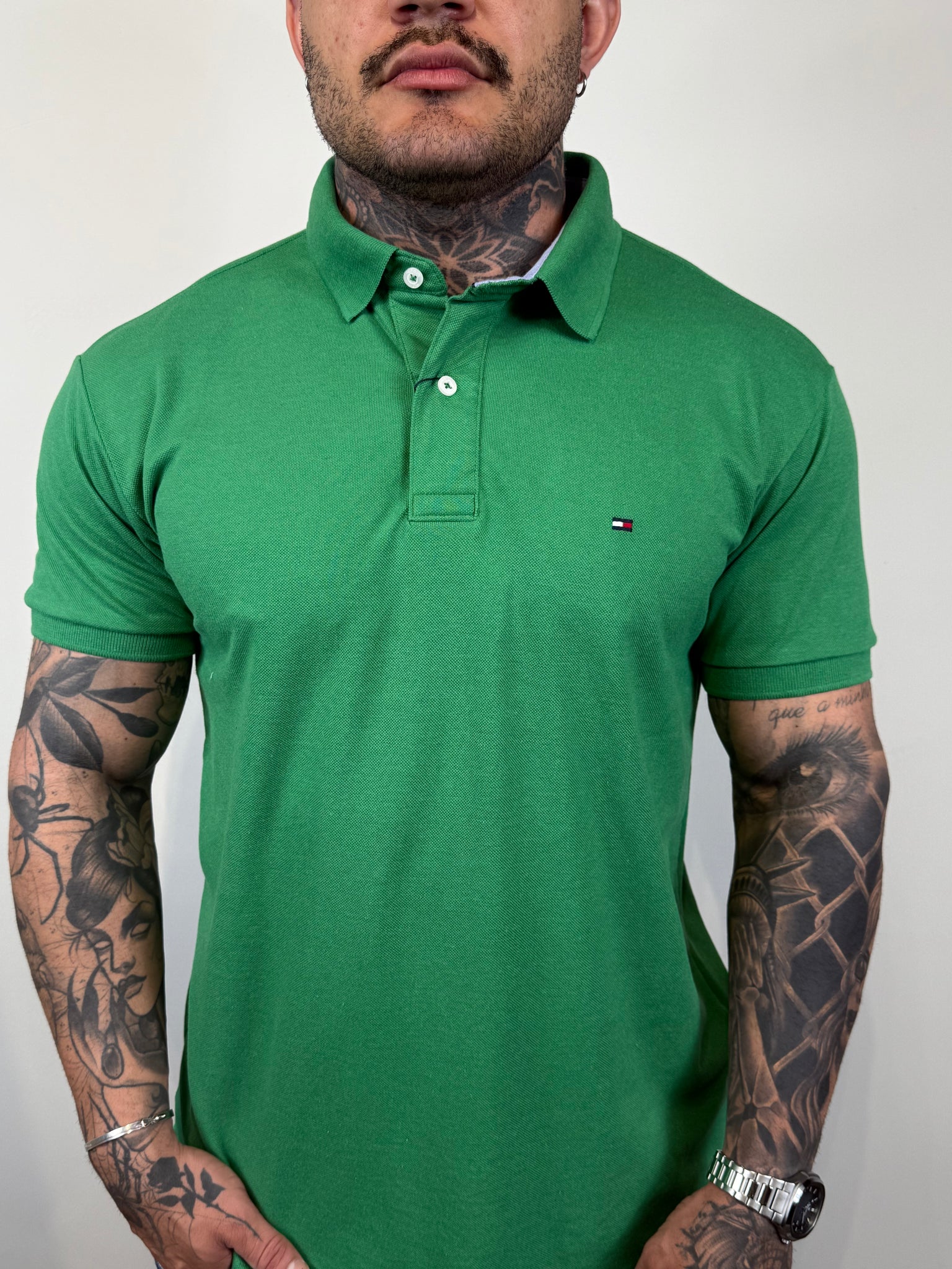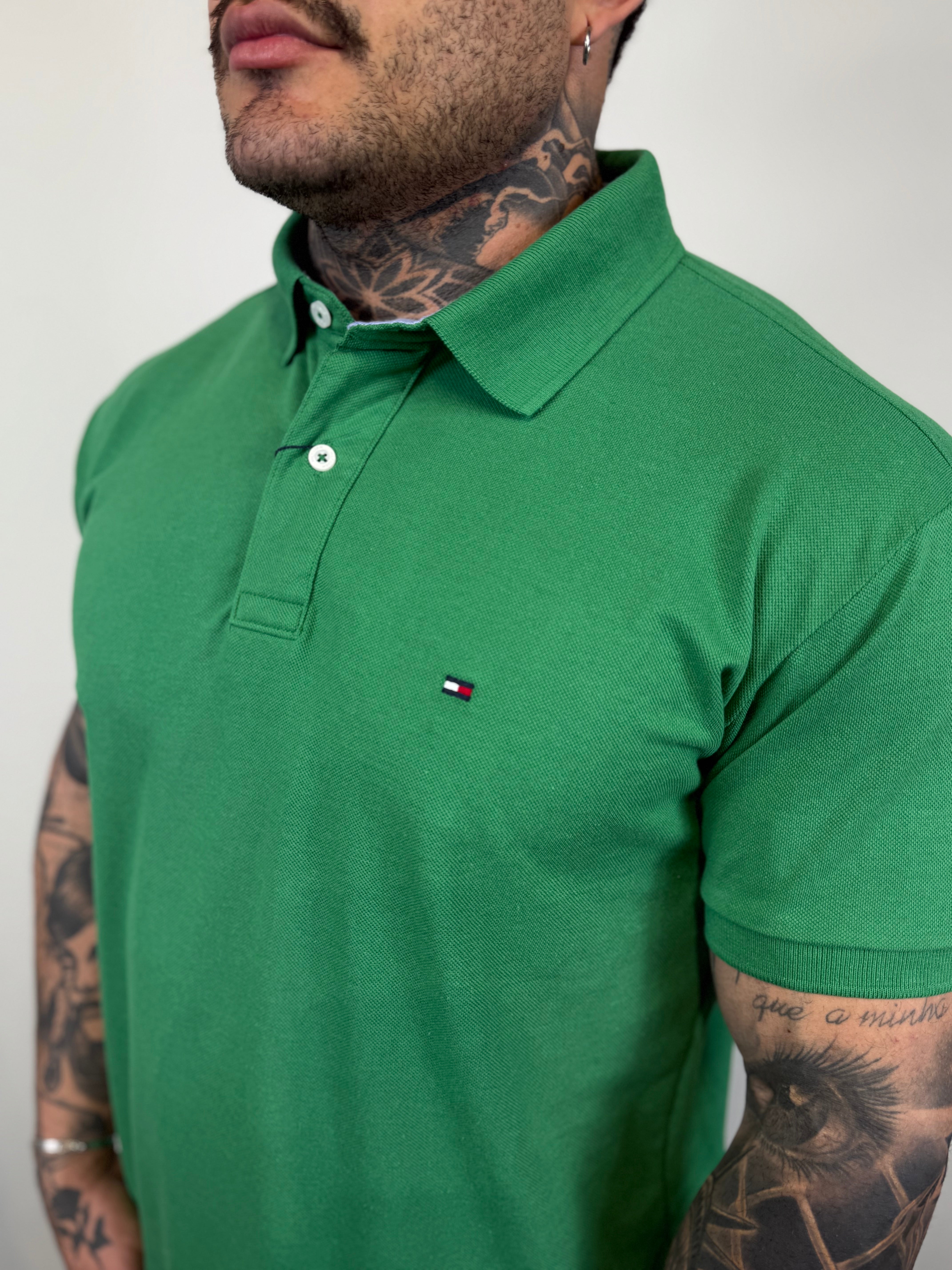 • A gola polo bem estruturada e os punhos com acabamento canelado desenham o perfil da peça com marcas registradas da Tommy Hilfiger — logo bordado na altura do peito que salta sutilmente, cores contrastantes que realçam, faixas ou detalhes que criam profundidade visual.